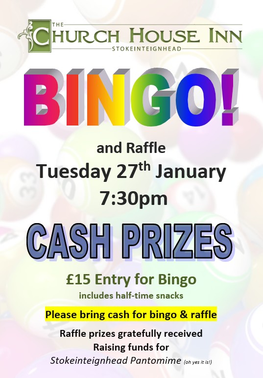 The next Bingo night is planned for 27th January 2026, to raise funds for the Stokeinteignhead Village Pantomime, which is planned for early in 2027.